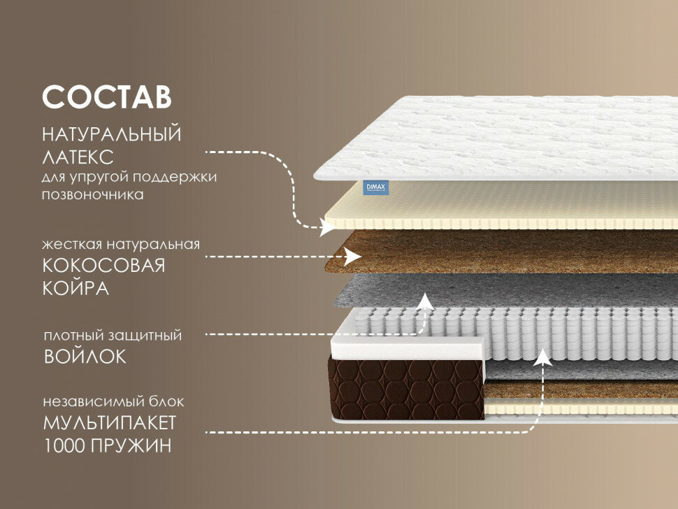 Матрас Dimax Мега Медиум 200х200 см 53 925 ₽ Подробнее