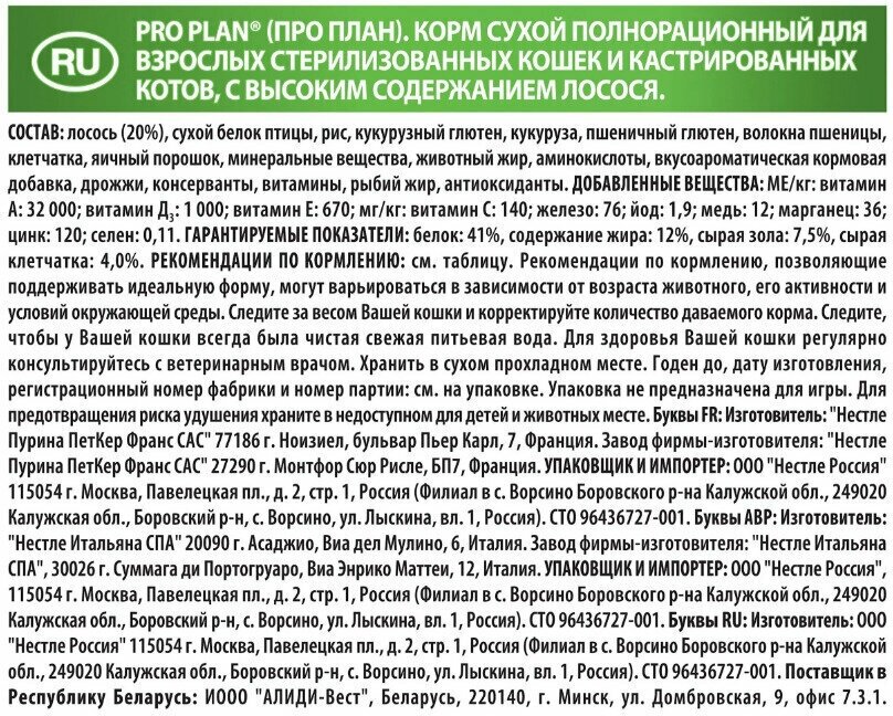 Корм для кошек PRO PLAN Sterilised для стерилизованных, с лососем сух. 400г