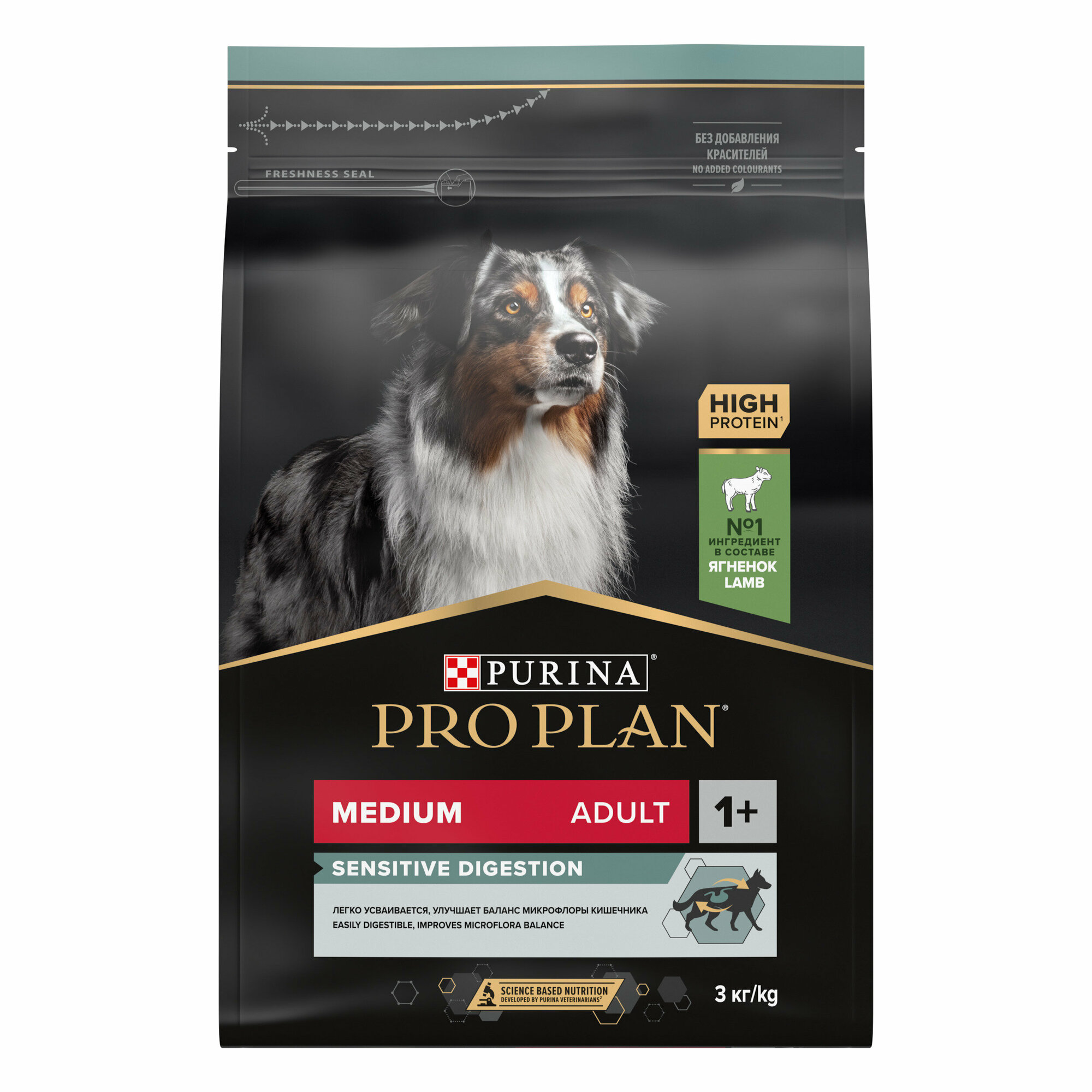 Сухой корм Pro Planдля взрослых собак средних пород с чувствительным пищеварением, с высоким содержанием ягненка, Пакет, 3 кг х 1 шт