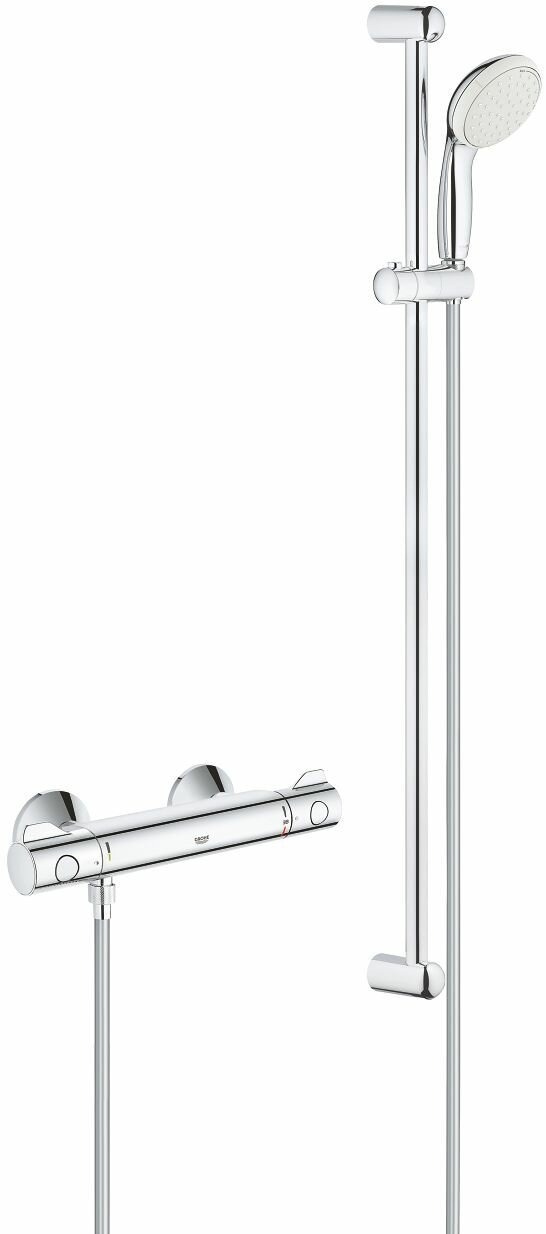 Термостатический смеситель для душа GROHE Grohtherm 800 с душевым гарнитуром New Tempesta II, душевая штанга 900 мм, хром (34566001)