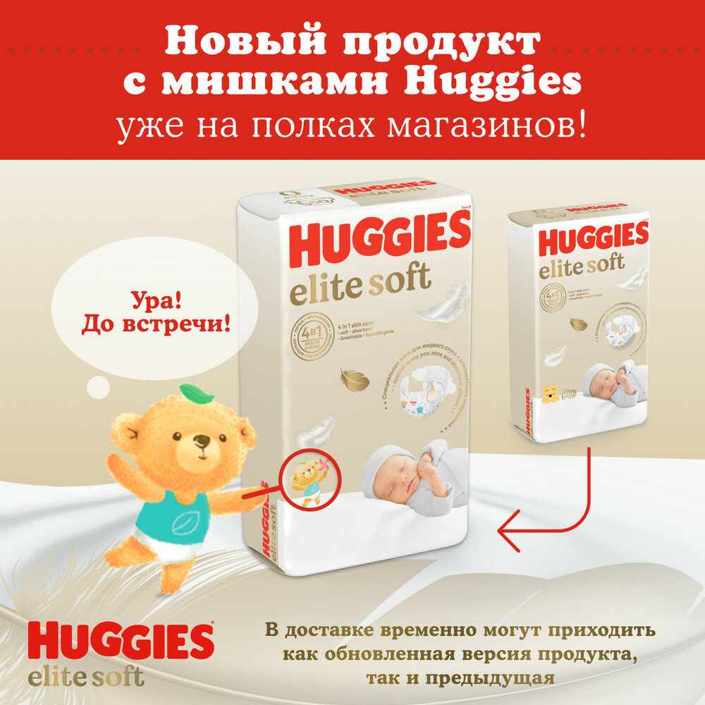 Подгузники Huggies Elite Soft для новорожденных 3-5кг, 1 размер, 84шт