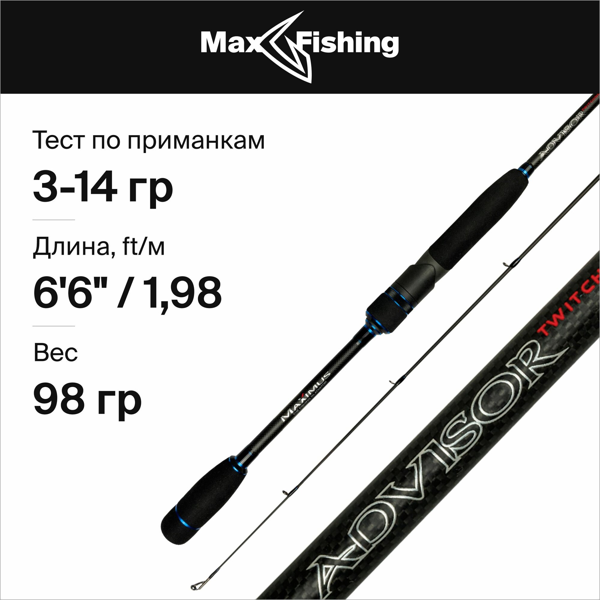 Удилища Спиннинг для рыбалки Maximus Advisor Twitching 198L 3-14гр, 198 см,для твичинга, блесны, джига, на окуня, шуку, судака, жереха / удилище спиннинговое