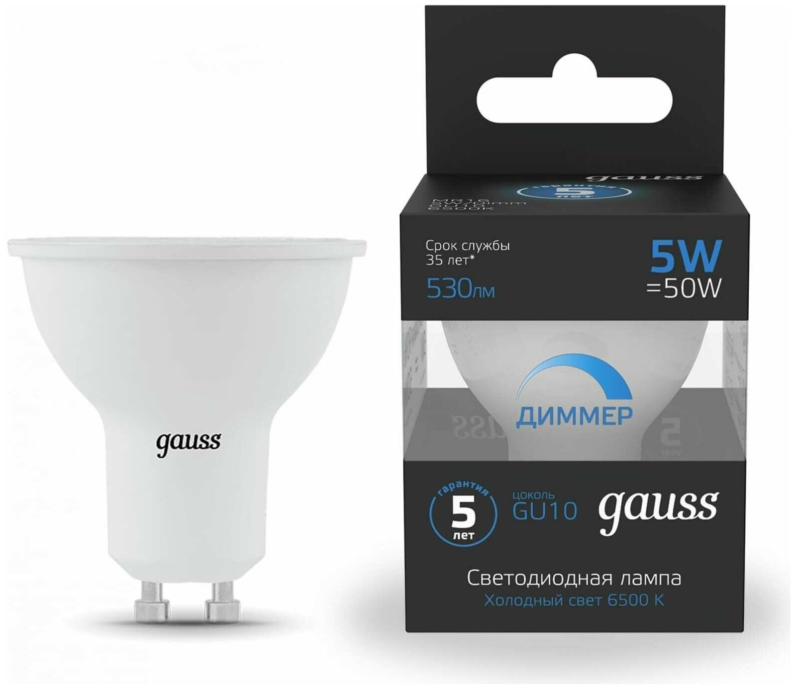 Светодиодная лампа Gauss MR16 5W 530lm 6500K GU10 диммируемая LED 1/10/100