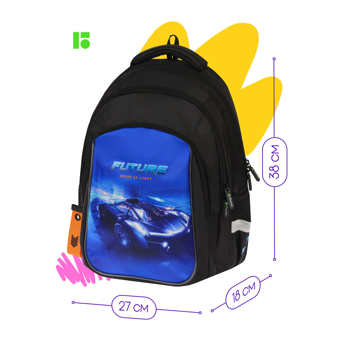 Школьный рюкзак (ранец) Рюкзак Berlingo Comfort "Speed of light" 38*27*18см, 3 отделения, 3 кармана, эргономичная спинка