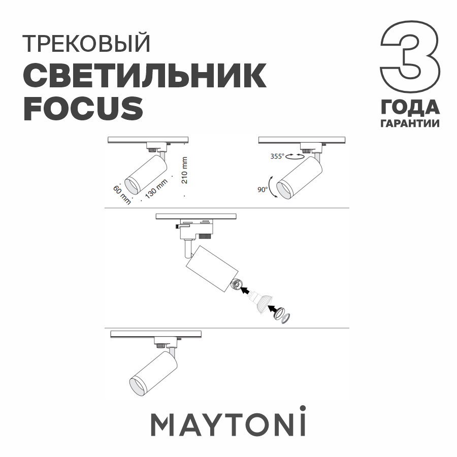 Трековый светильник потолочный черный Maytoni Technical Focus TR004-1-GU10-B 2 090 ₽ Подробнее