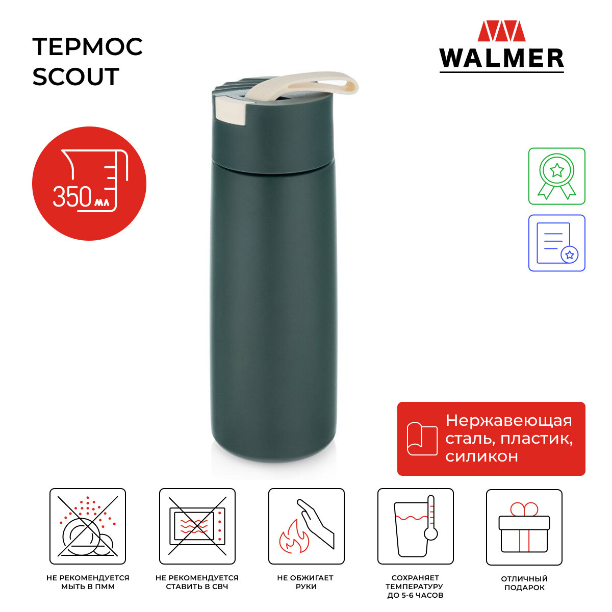 Термос Термос с ситечком компактный Walmer Scout 350 мл цвет зеленый