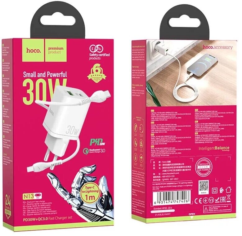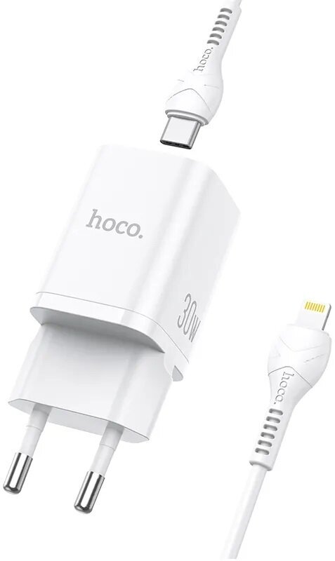 Зарядное устройство Сетевое зарядное устройство Hoco N13 PD30W+QC3.0 + кабель Type-C - Lightning, белый