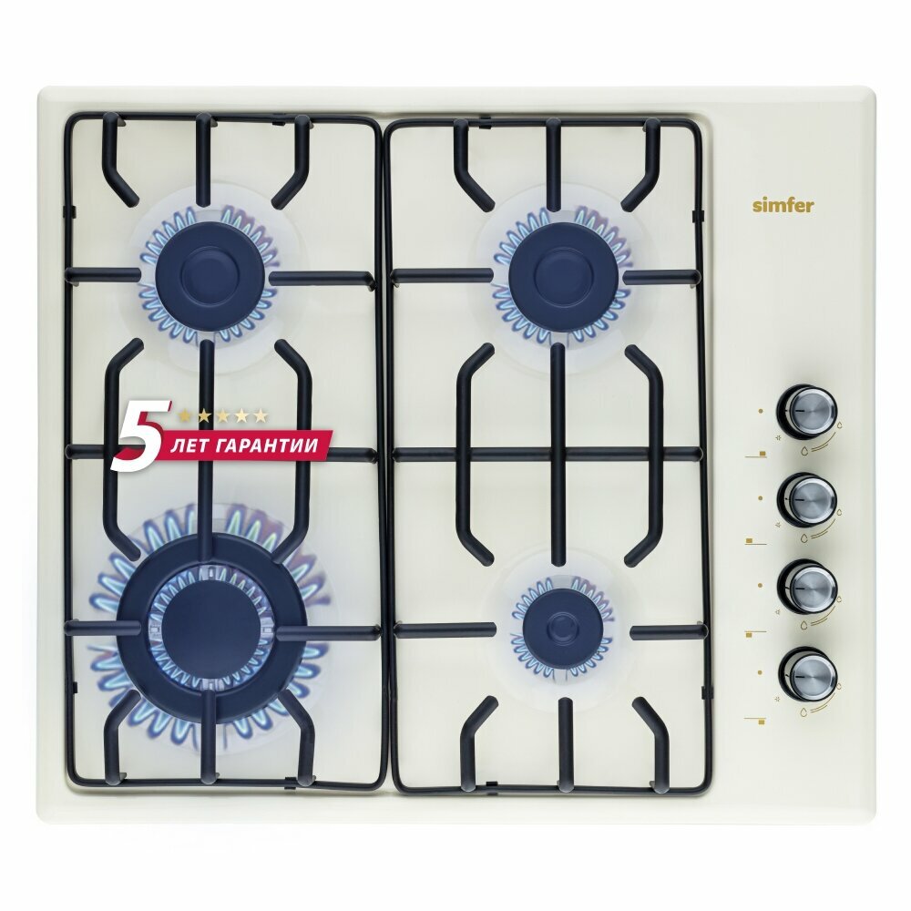 Газовая варочная поверхность Simfer H60Q41W571 (решетки LAMA, газ-контроль)