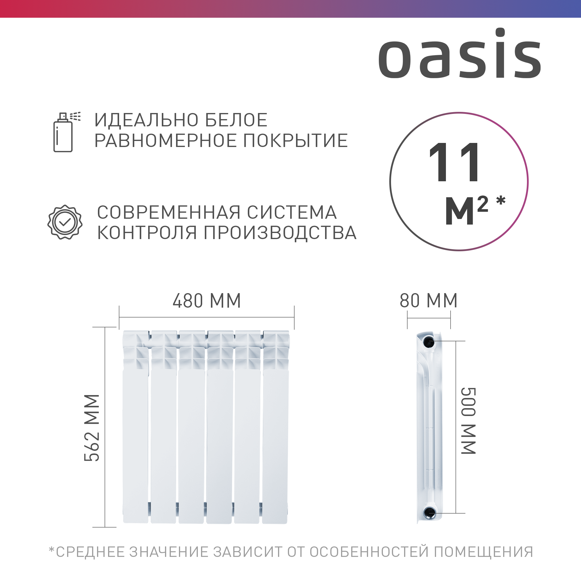 Радиатор биметаллический OASIS ECO 500/80 912Вт 6 секций, Россия