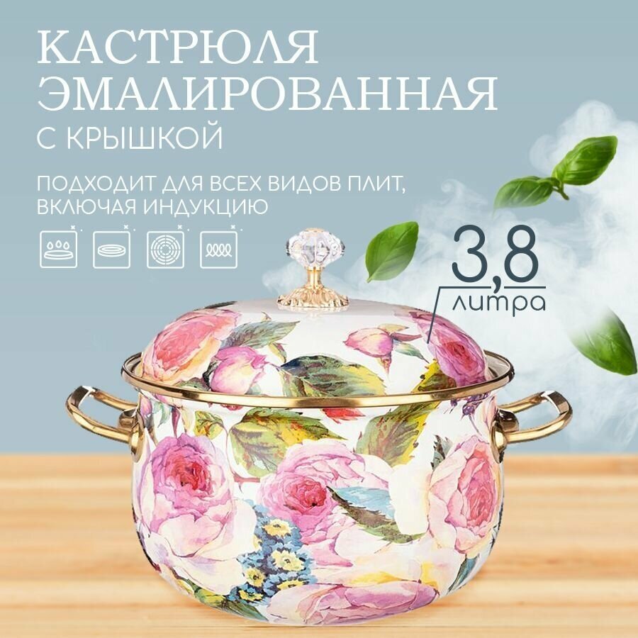 Кастрюли Кастрюля эмалированная с крышкой Vintage Flowers Объем: 3800 мл