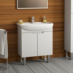 Тумба под умывальник Тумба Dreja David 65, 99.0701, подвесная/напольная, 2 дверцы, с опорами, белый глянец