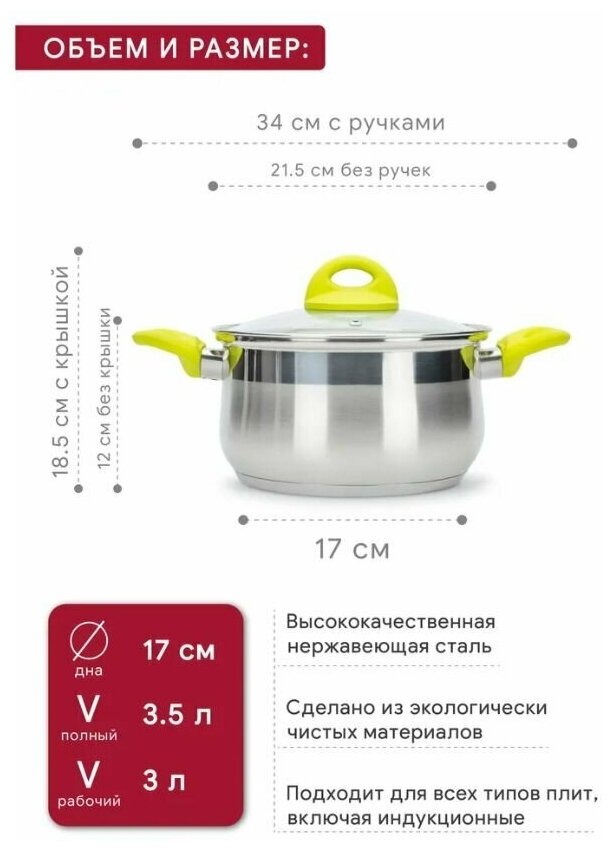 | Дополнительно | совместимость с индукциеймытье в посудомойкеотверстие для парамногослойное дношкала литража |