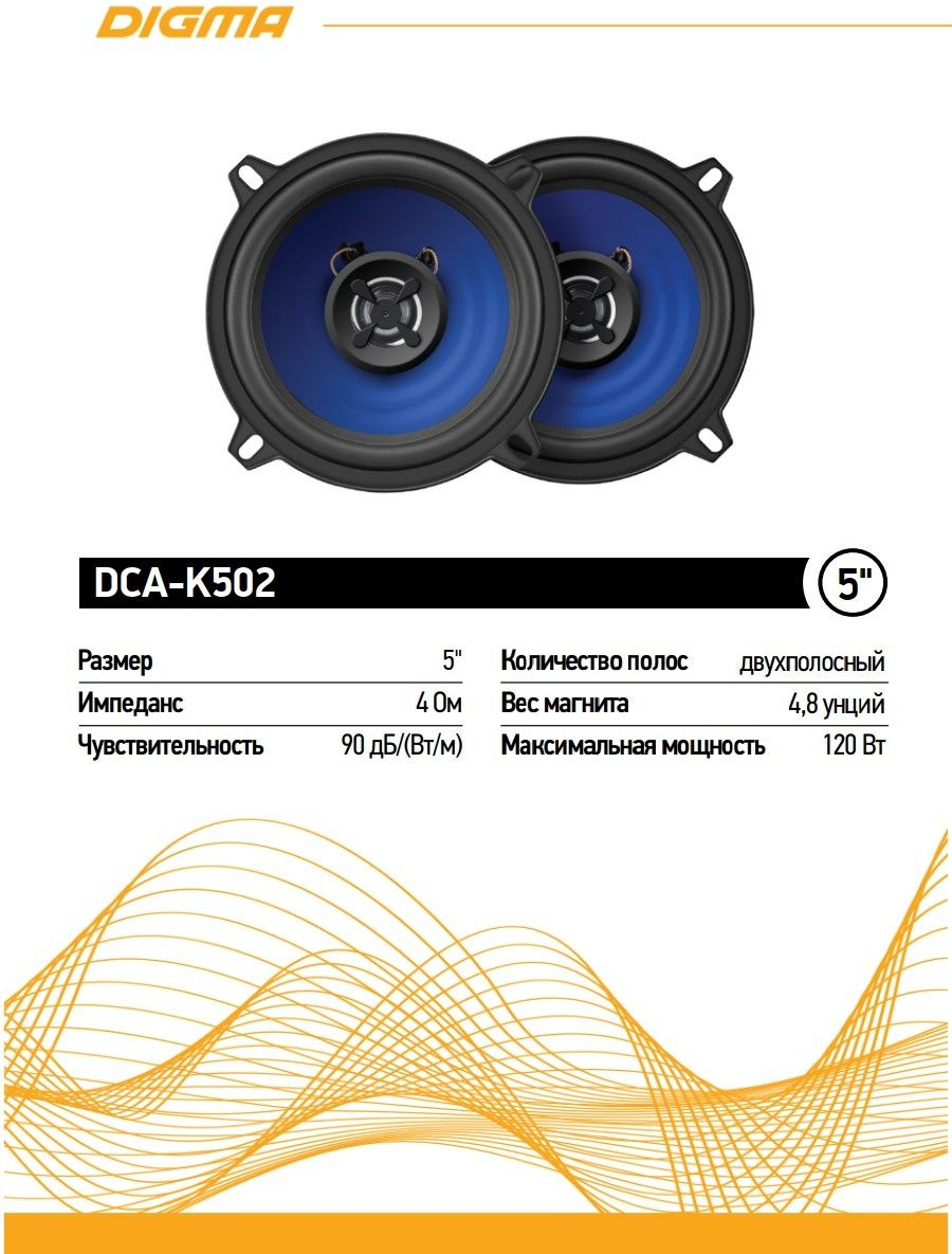 Колонки автомобильные Digma DCA-K502 (без решетки) 120 Вт