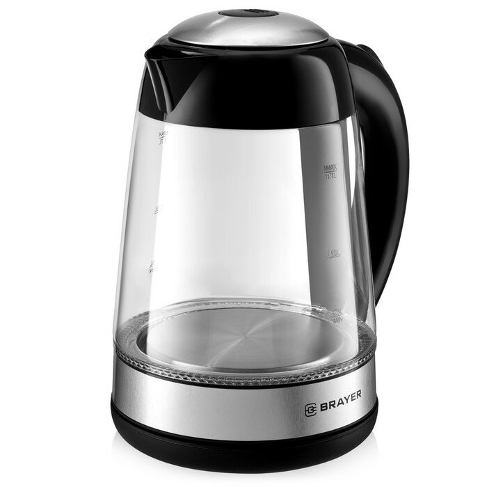 Электрочайник Чайник электрический BRAYER BR1012BK, стекло, 1.7 л, 2200 Вт, чёрно-серебристый