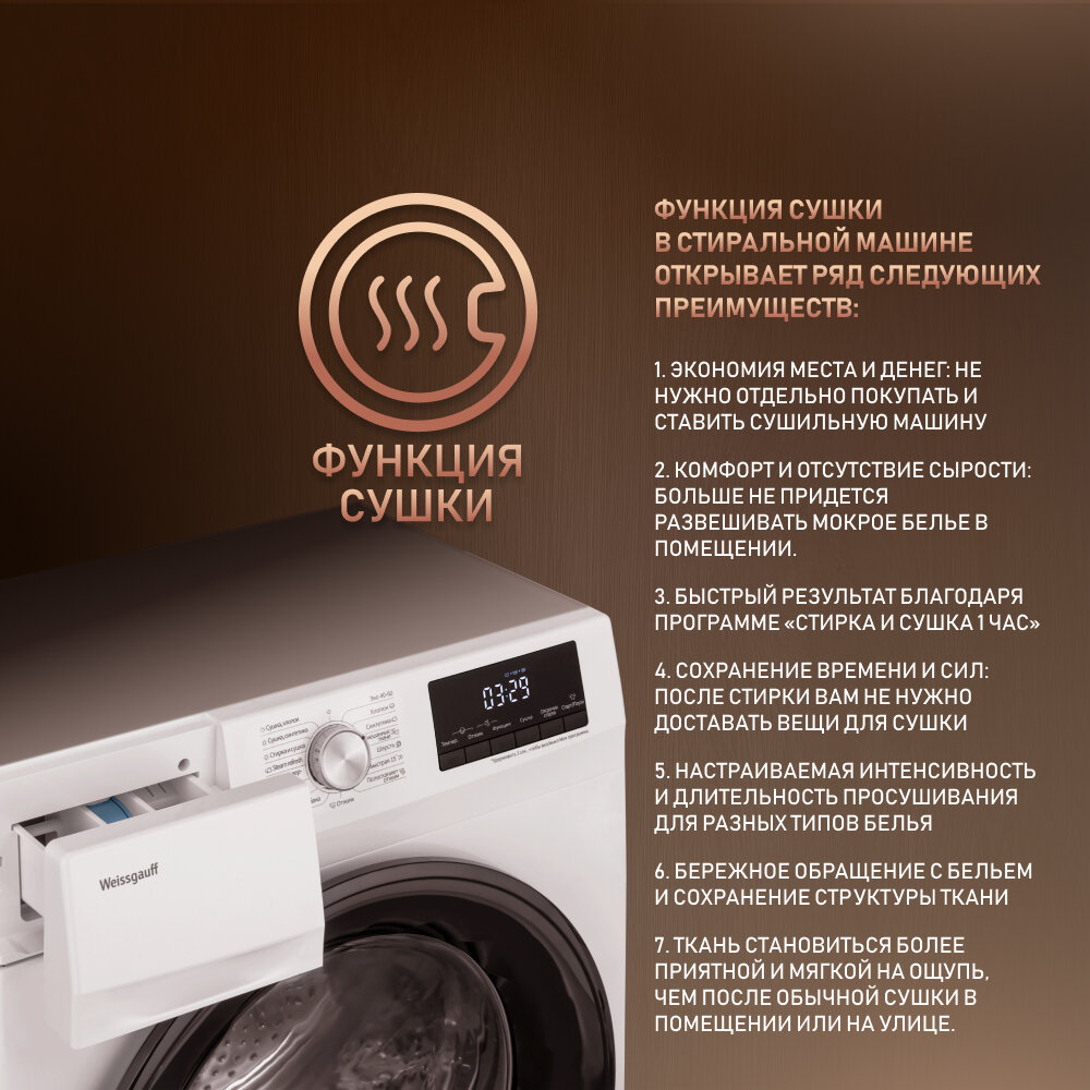 Стиральная машина с сушкой, инвертором и паром Weissgauff WMD 6148 DC Inverter Steam