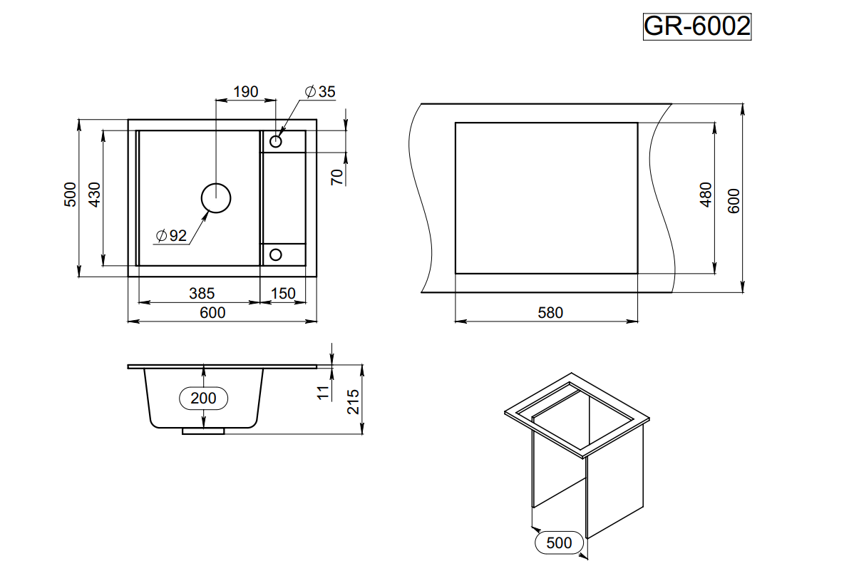 GR-6002, алюминиум, кухонная мойка, кварц