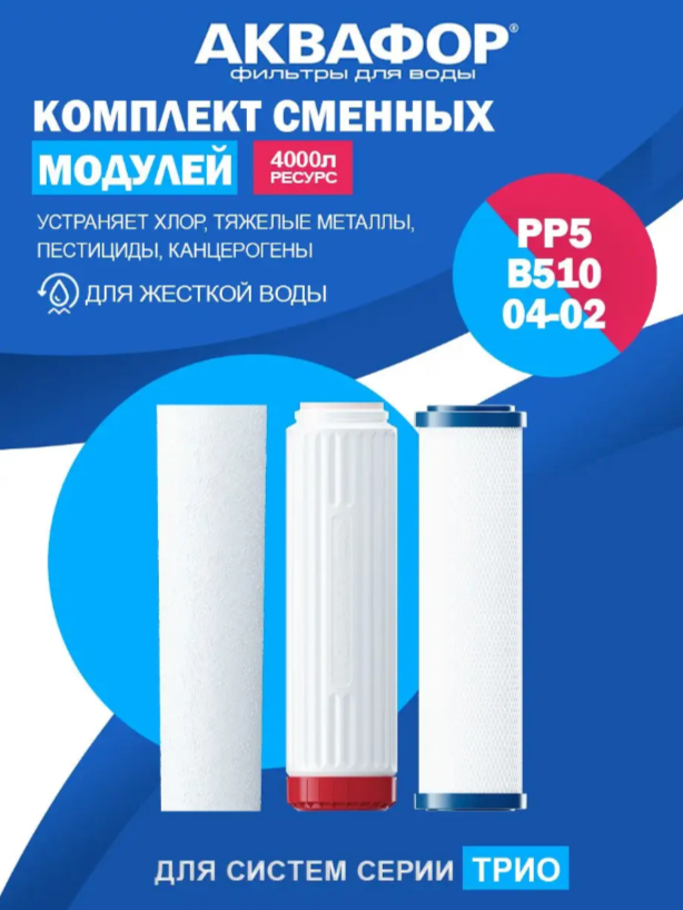 АКВАФОР РР5-В510-04-02 Комплект сменных модулей для Трио Умягчающий, арт.И1895