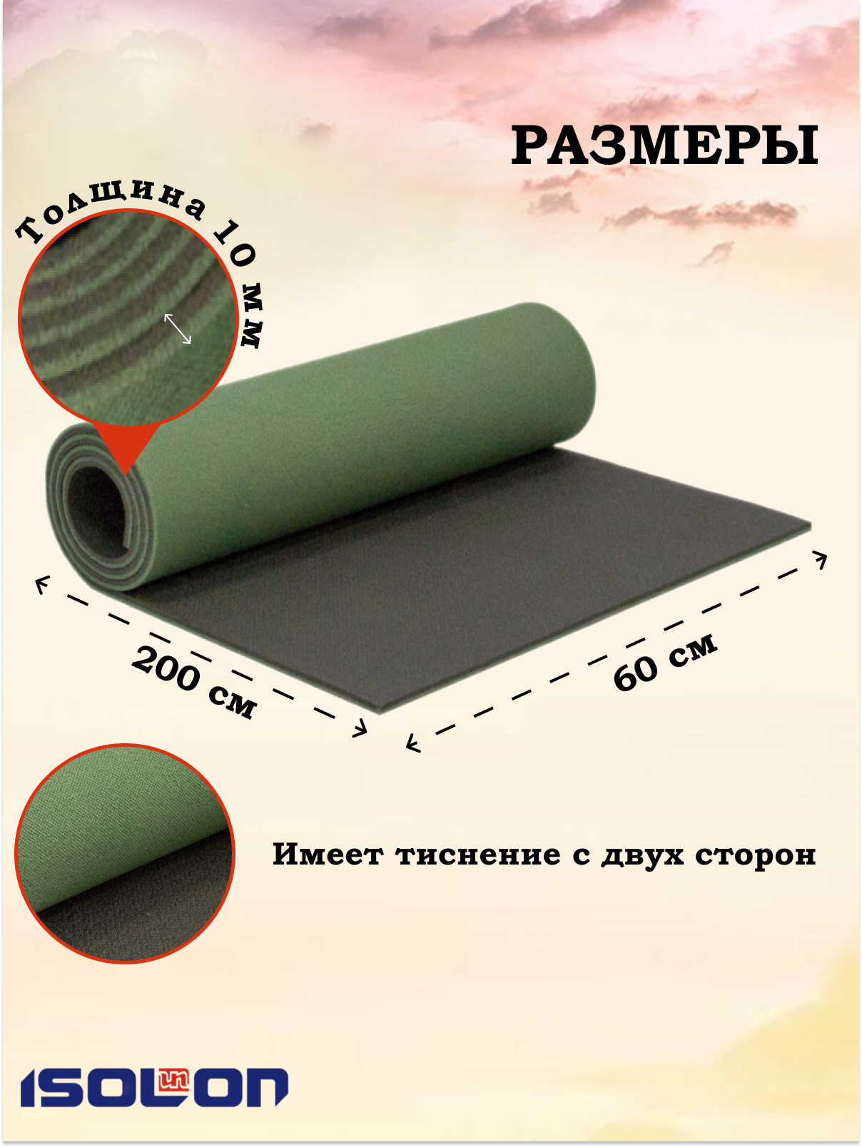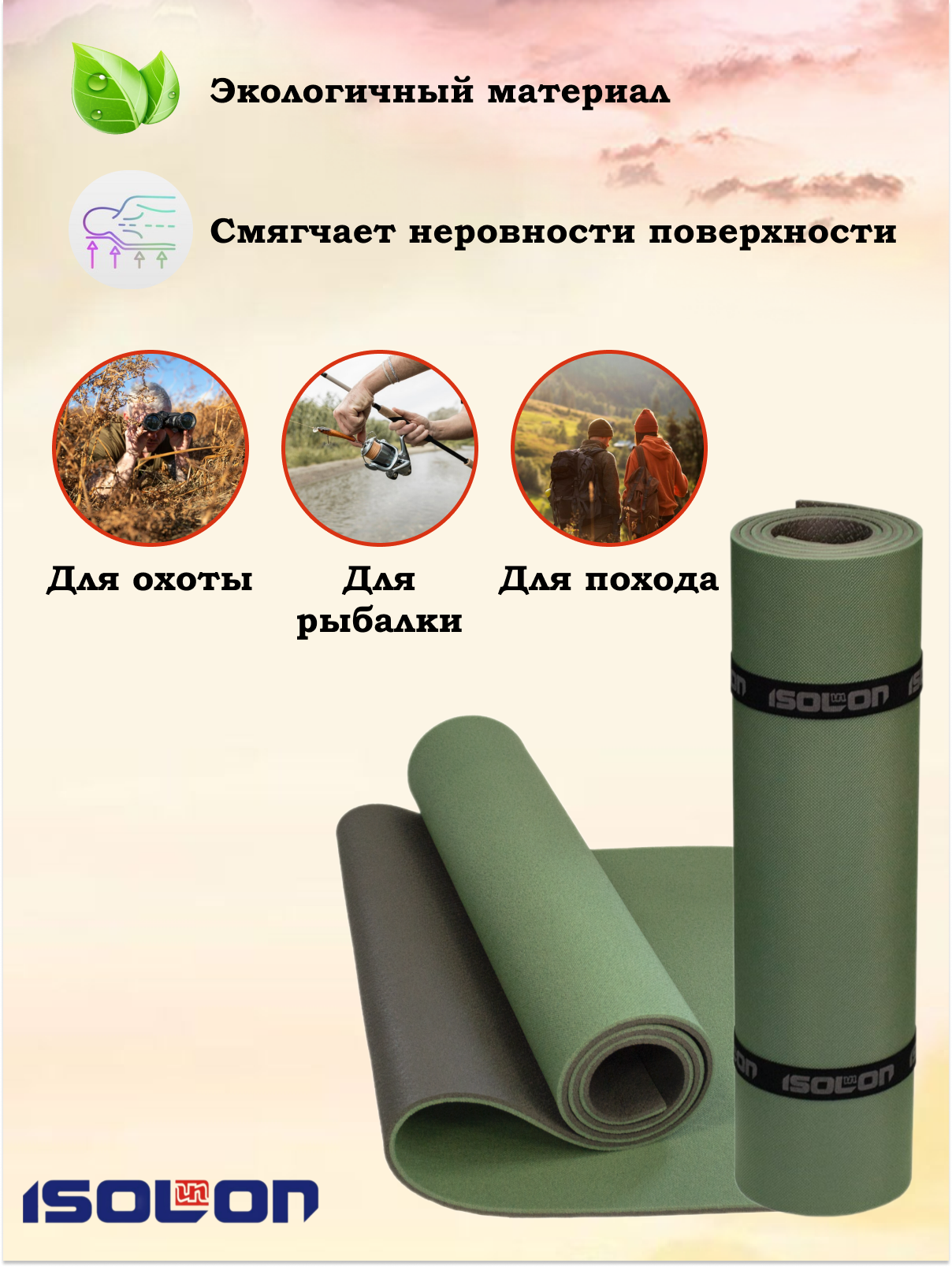 Туристические коврики Коврик туристический 10 мм длинный Isolon Optima Light S10, 200х60см серый/хаки