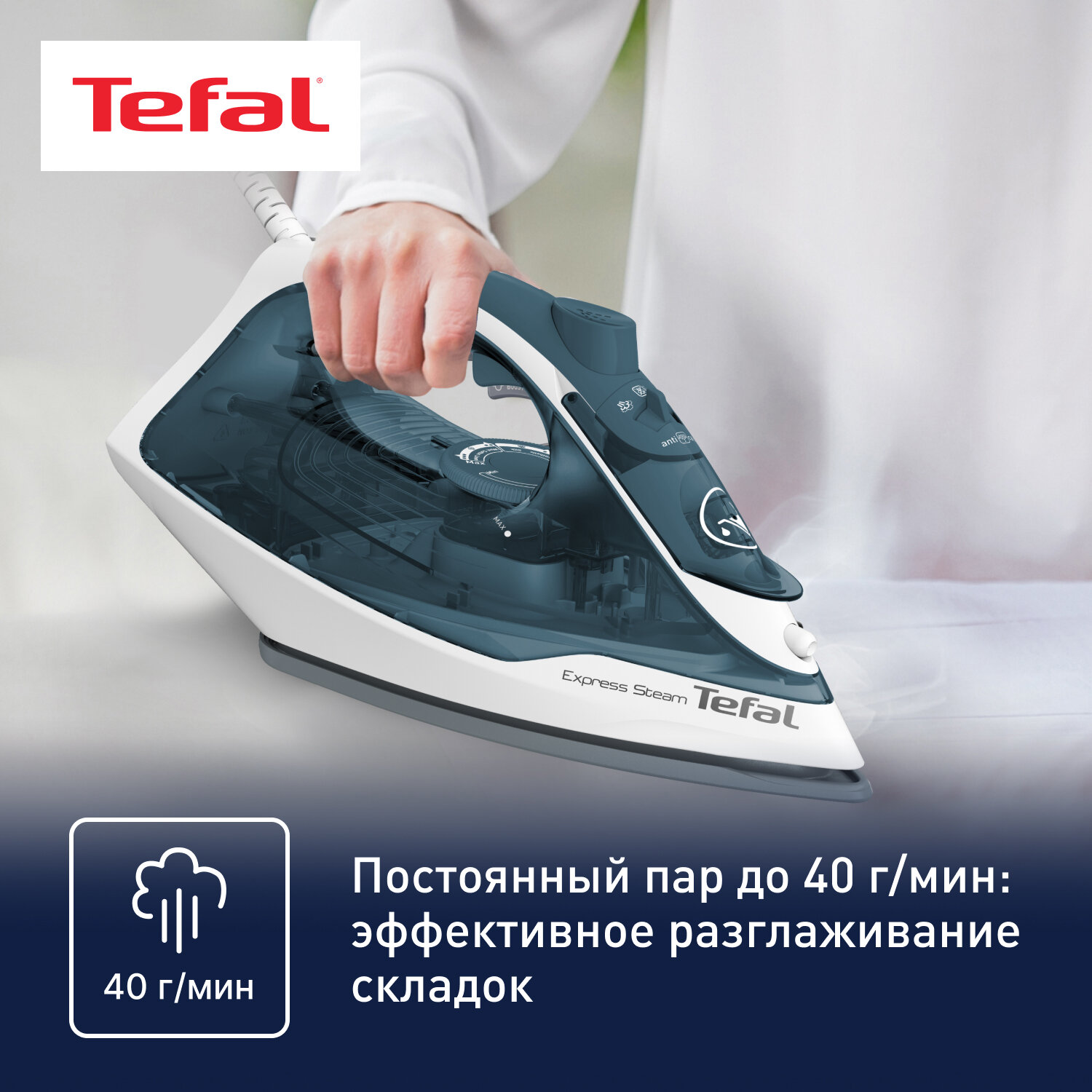 Утюги Паровой утюг Tefal Express Steam FV2839E0 с противокапельной системой, вертикальным отпариванием, паровым ударом 185 г/мин, 2400 Вт, бирюзовый