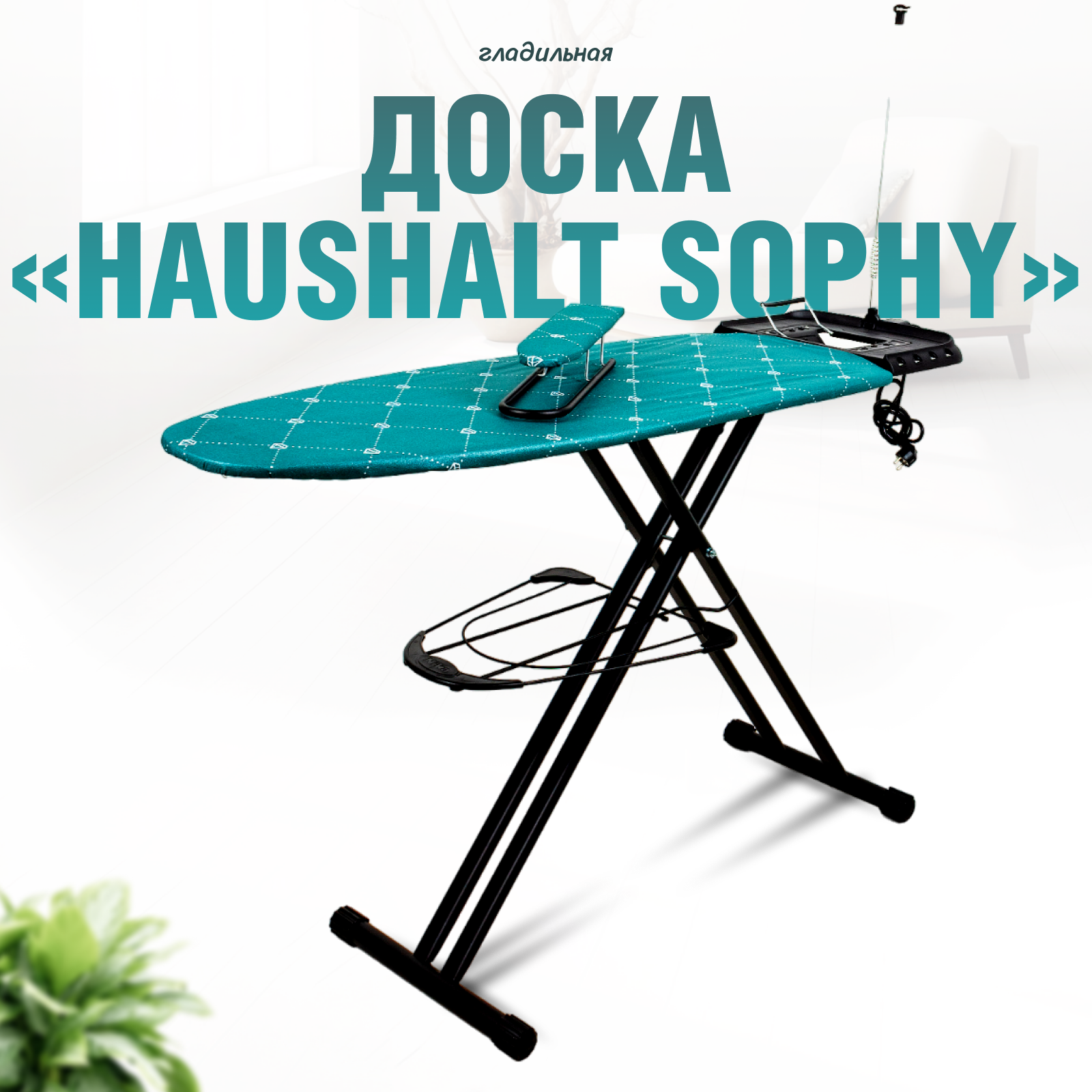 Гладильная доска Ника с розеткой Haushalt Sophy тефлон 123х46 см подставка для утюга, полка, рукав