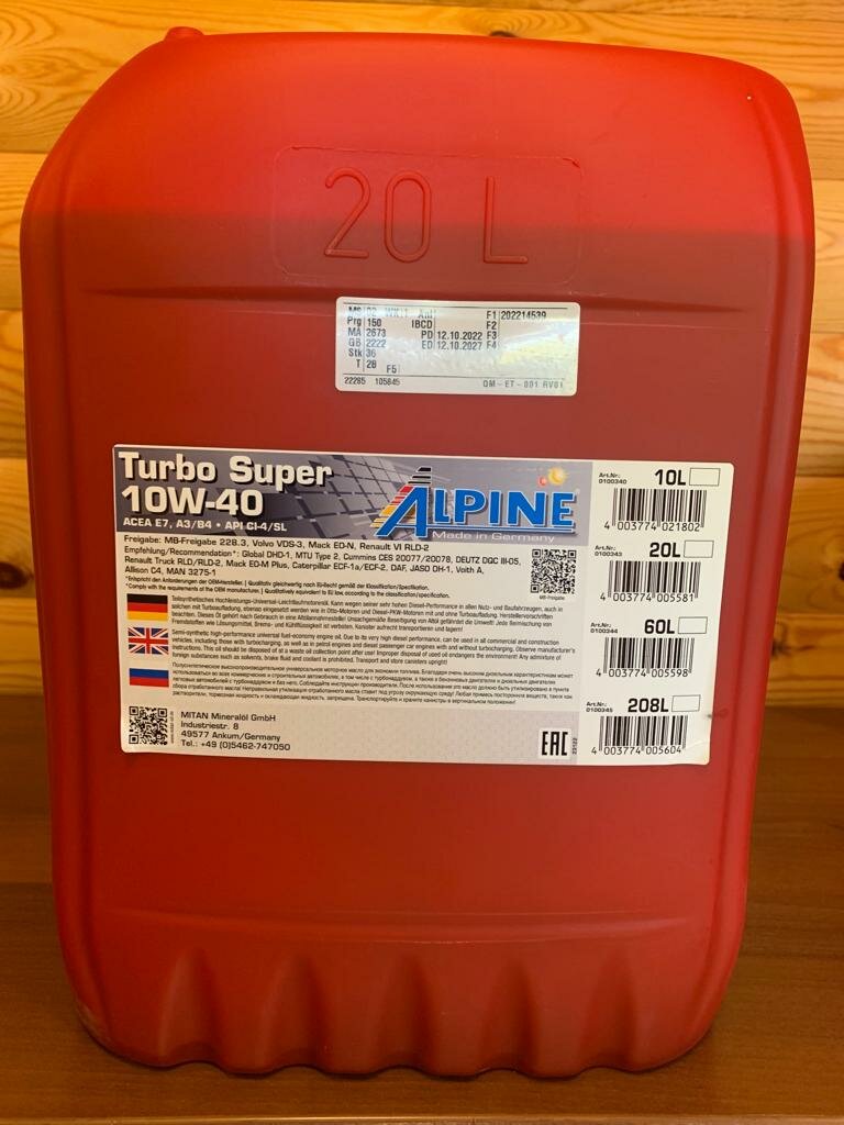 Моторные масла ALPINE 100343 ALPINE TURBO SUPER 10W-40 20L
