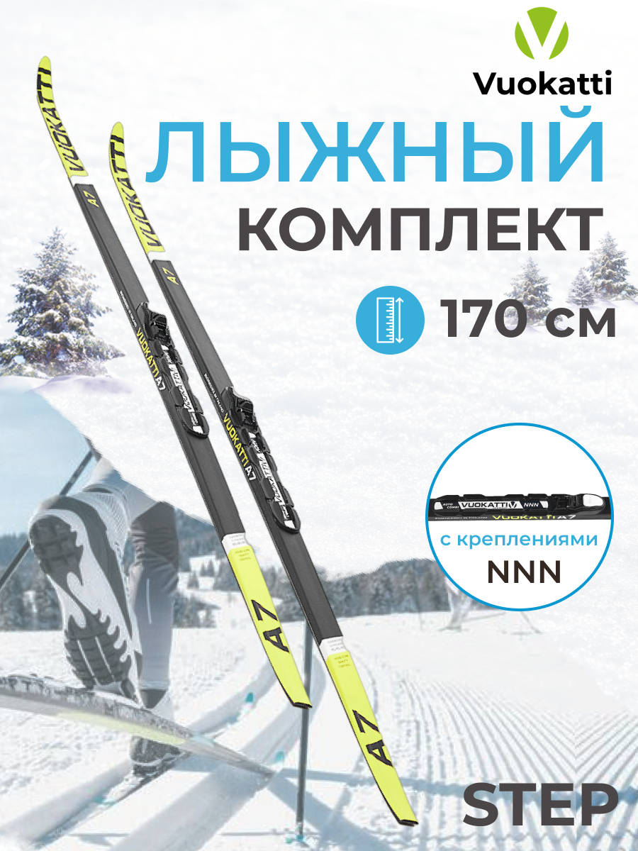 Лыжный комплект VUOKATTI / Беговые лыжи 170 см с креплением NNN Step цвет Black/Yellow
