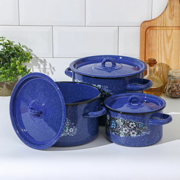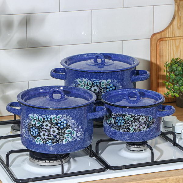 Стальэмаль Набор кастрюль «Голубика», 3 предмета: 1,5 л, 2,9 л, 4,5 л, индукция, цвет синий 3 797 ₽ Подробнее