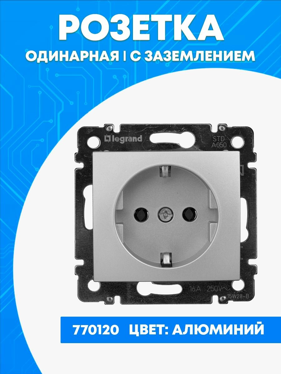 Рамки для розеток и выключателей Розетка VALENA CLASSIC, скрытый монтаж, с заземлением, алюминий | код. 770120 | Legrand ( 1шт. )