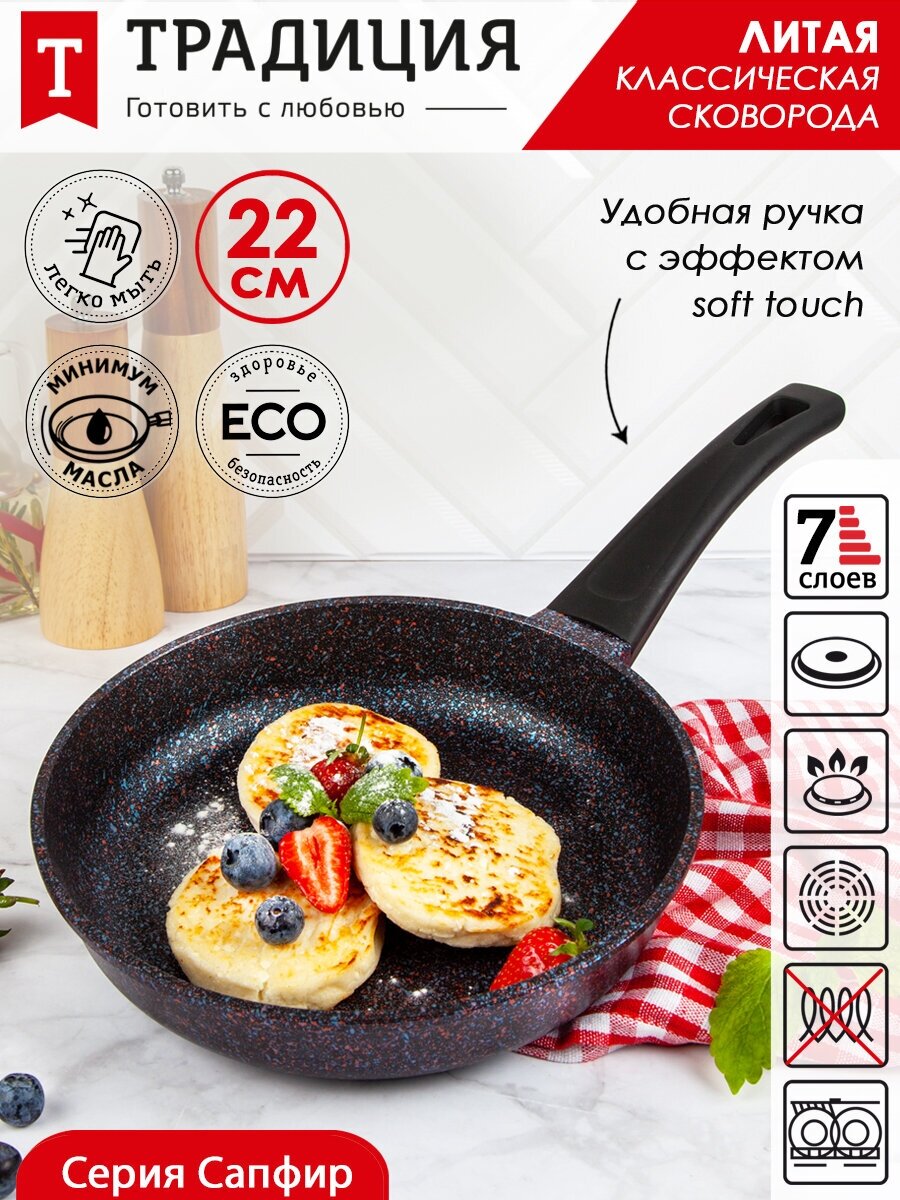 Сковорода литая с антипригарным покрытием Традиция Сапфир 22 см