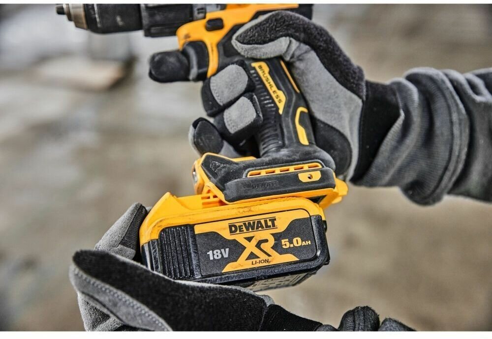 Аккумуляторная ударная бесщеточная дрель-шуруповерт DEWALT, 18 В, 2000 об/мин, 34000 уд/мин, c 2 АКБ 5 Ач и ЗУ, в кейсе TSTAK, DCD805H2T