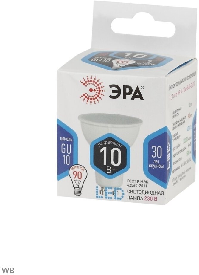 Лампочка Лампочка светодиодная ЭРА STD LED MR16-10W-860-GU10 GU10 10Вт софит холодный дневной свет арт. Б0049074 (1 шт.)