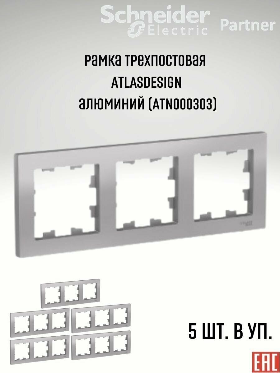 Розетки Рамка трехместная Алюминий AtlasDesign Schneider Electric