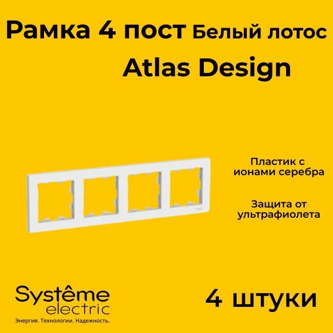 Розетки Рамка четырехместная для розеток и выключателей Schneider Electric (Systeme Electric) Atlas Design белый лотос ATN001304 - 4 шт.