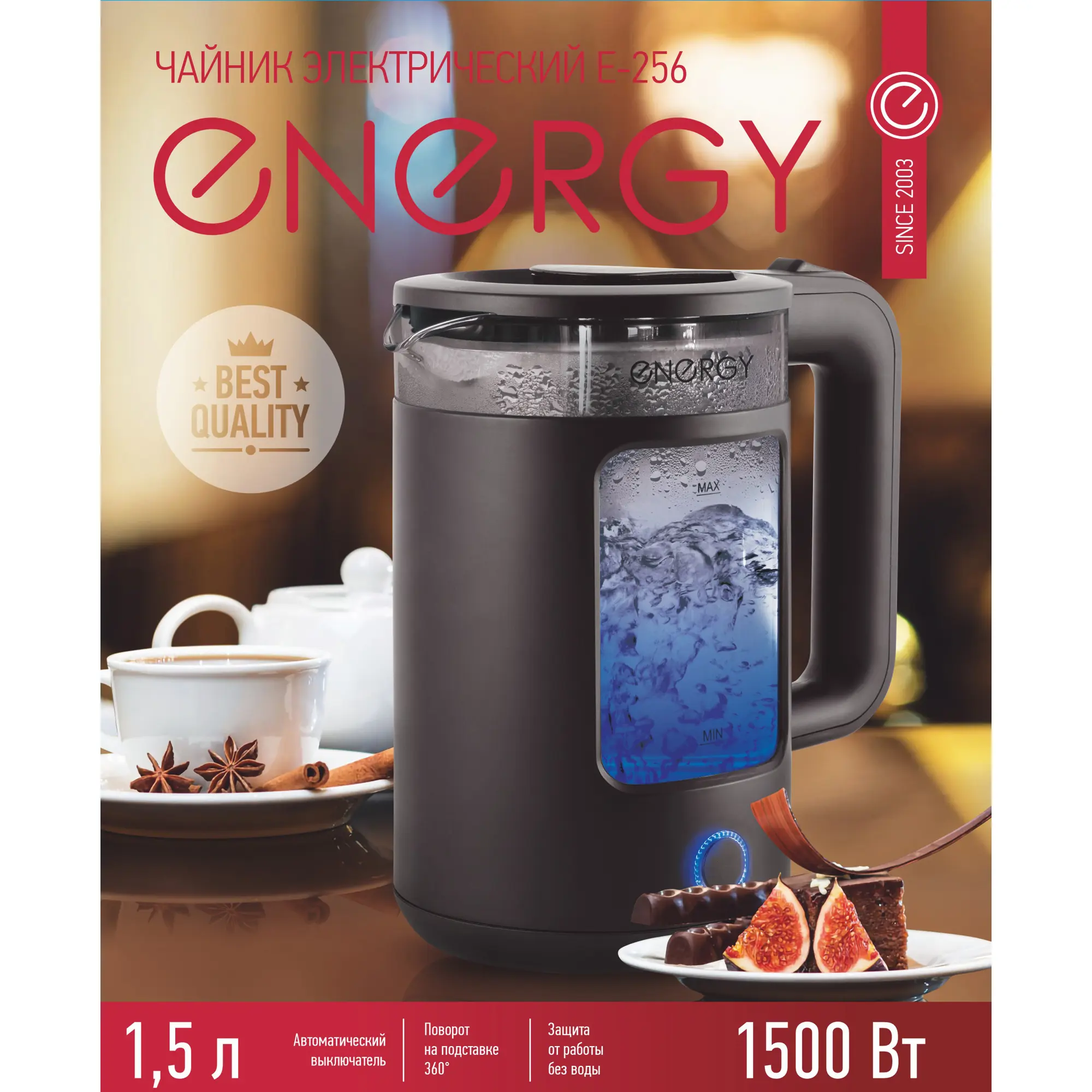 Электрический чайник Energy E-256 1.5 л стекло цвет черный