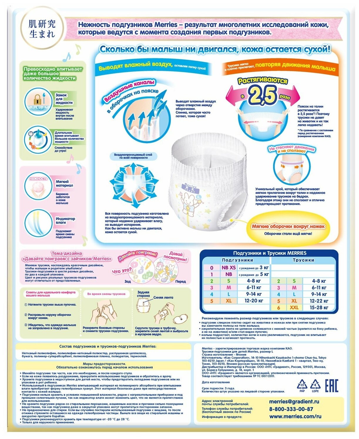 Подгузники-трусики Merries, размер L (9-14 кг), 44 шт.