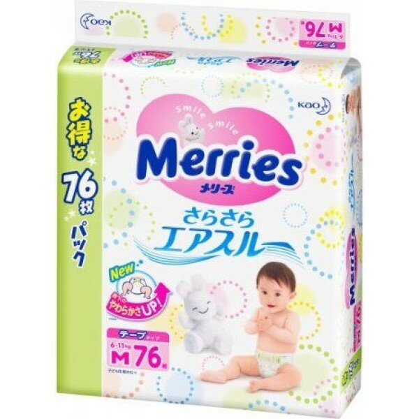 Merries Подгузники для детей размер М - 6-11 кг, в упаковке 76 шт.