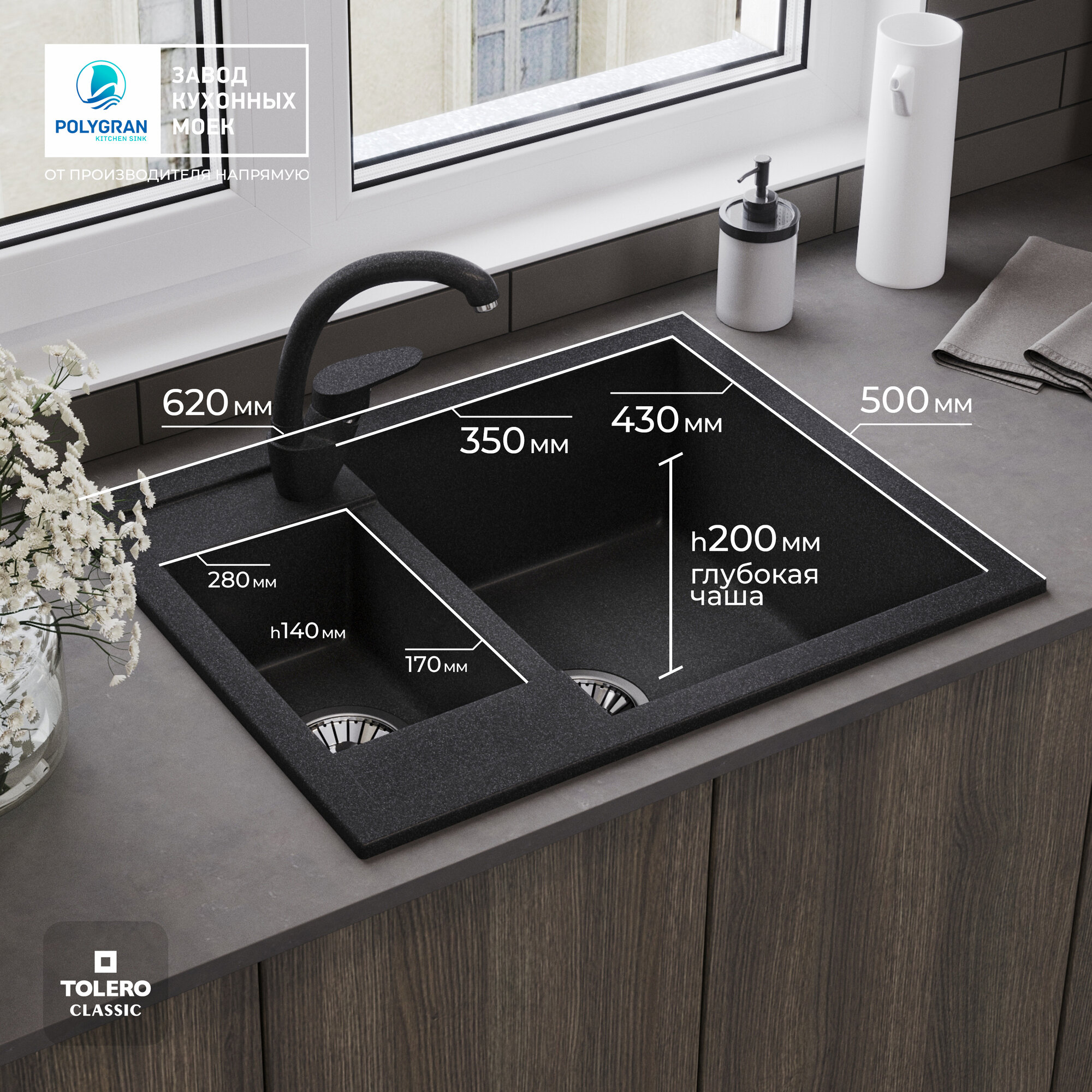 Мойка для кухни TOLERO Classic R-109 каменная врезная двухсекционная Кварц (№911 Черный)