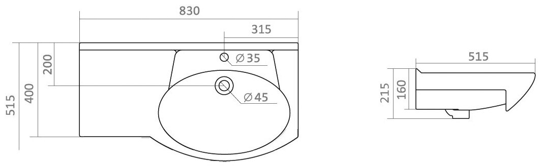 Раковина-умывальник Santek Коралл 83 отверстие под смеситель 1WH110225 с левым крылом