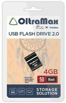 USB-флешки Флешка OltraMax 50, 4 Гб, USB2.0, чт до 15 Мб/с, зап до 8 Мб/с, чёрная