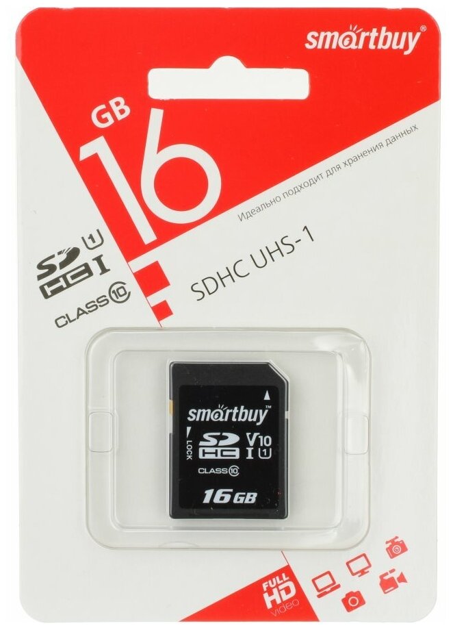 Карта памяти SmartBuy SDHC 16 ГБ Class 10, UHS-I U1, R/W 94/39 МБ/с