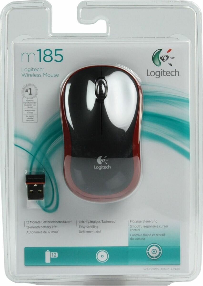 Мышки Мышь Logitech M185 оптическая беспроводная USB красный/черный (910-002633) .