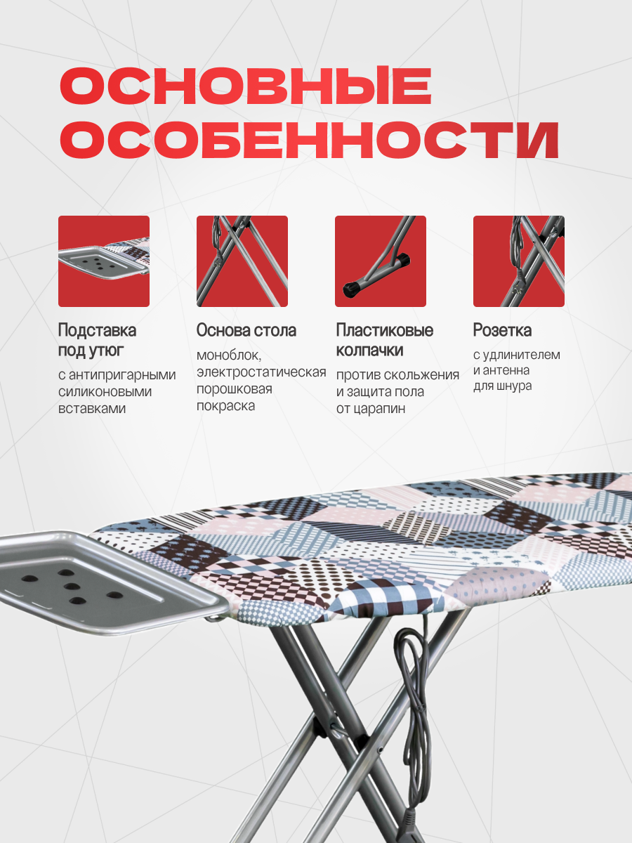 | Функции и возможности | подставка для утюга / регулировка высоты |