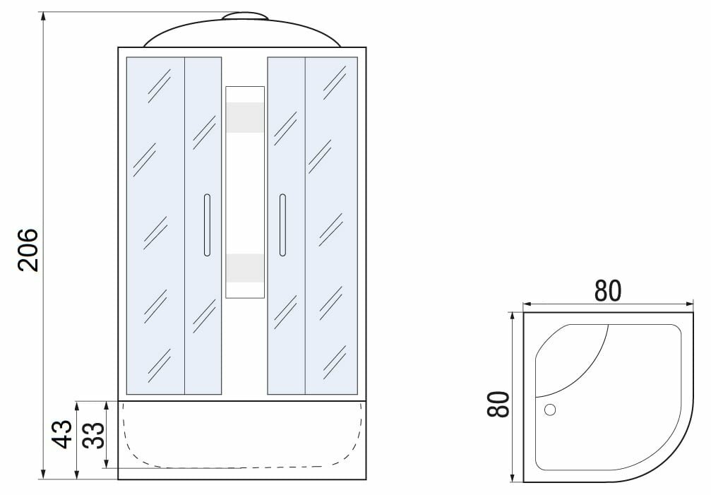 | Функции | гидромассаж вертикальный / верхний душ (тропический) / подсветка / вентиляция |