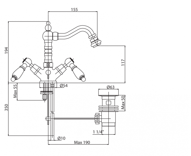 | Конструкция излива | донный клапан |