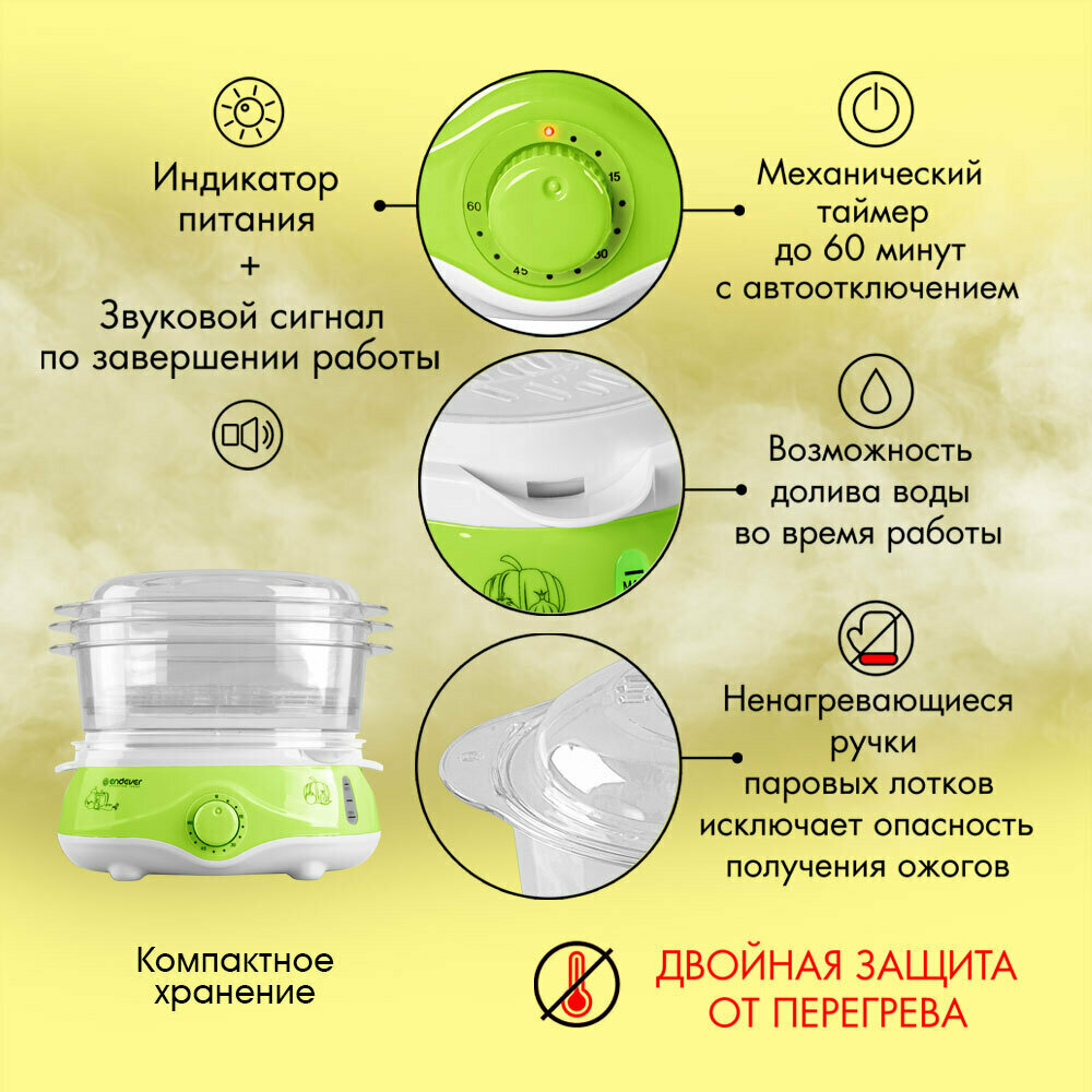 Пароварка ENDEVER Vita-171, белый/зеленый