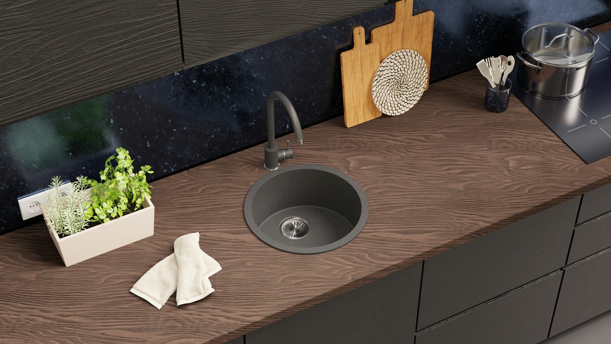 Мойка для кухни TOLERO Classic R-104 круглая каменная Кварц с возможностью нижней подклейки (№911 Черный)