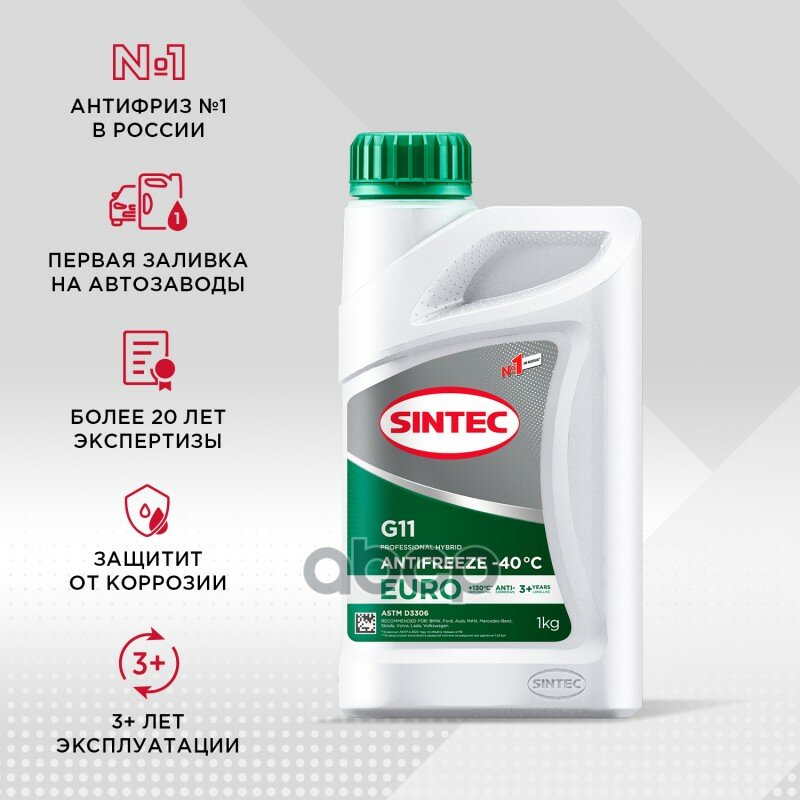 Антифриз зеленый -40C 1кг G11 Euro, 990553, SINTEC 714 ₽ Подробнее