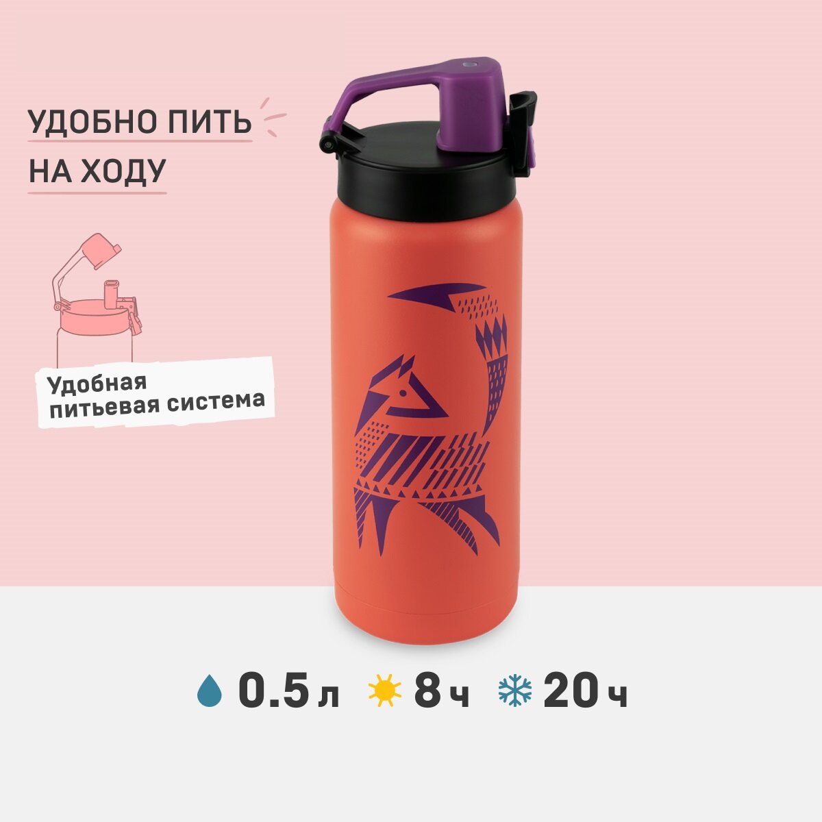 Термос - сититерм 500 мл Арктика 702-500 для спорта, крышка с ручкой-карабином, поилкой и фиксатором для дополнительной защиты от проливания.