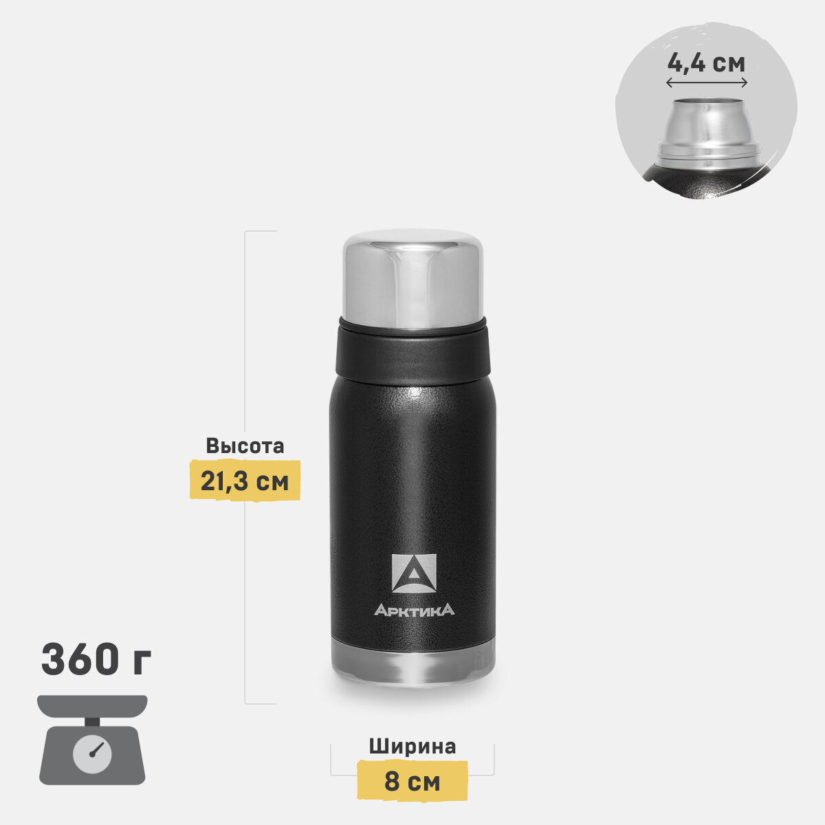 Арктика Термос с узким горлом в американском дизайне 106-750 (Черный), 750 мл 3 248 ₽ Подробнее