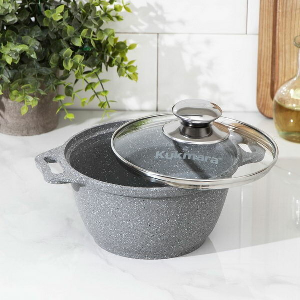 Кастрюля 6 л KUKMARA кмт62-1а, алюминий, темный мрамор